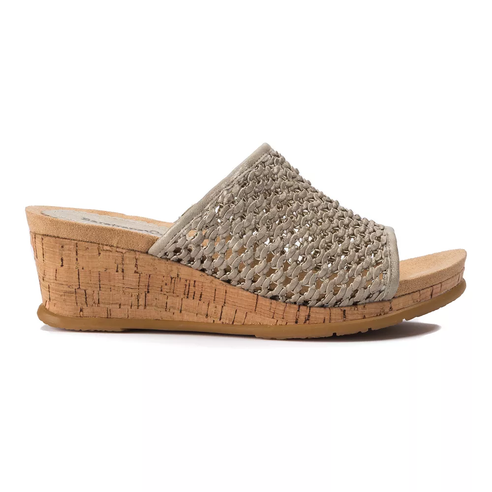 Comfort never looked better than these women’s wedge slide sandals from Baretraps.